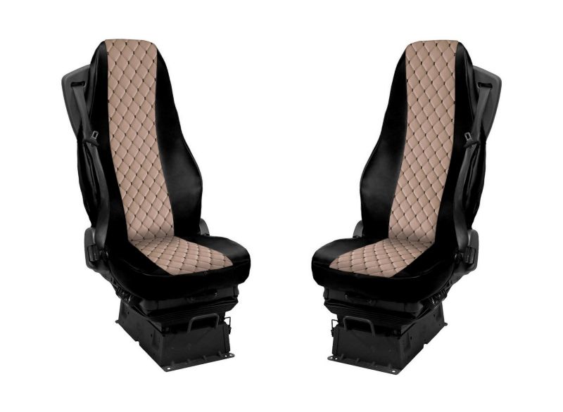 2 x Seat covers for Volvo FH 2009-2015 EURO 5 LHD RHD Truck Black Beige Leather