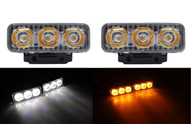 2 x 3 LED daytime running lights turn signal car fog DRL running driving white amber 12V