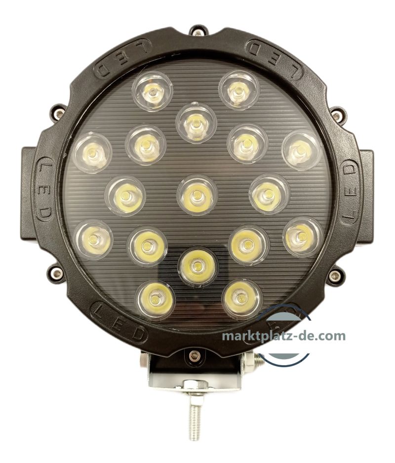LED Round Work Light 51W Lamp Fog Driving Offroad Black