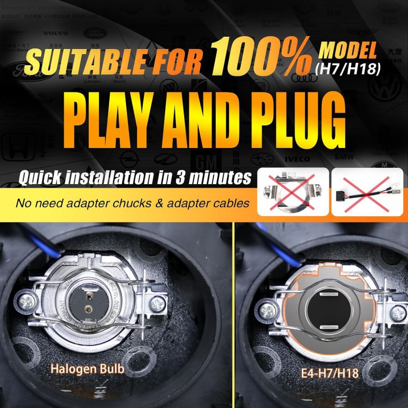 2 x LED E4S H7 H18 50W Luces Bombillas Luz Lampara de Automóviles Camiones Coche Hi/Low Beam 15000lm 6500K 12V 24V