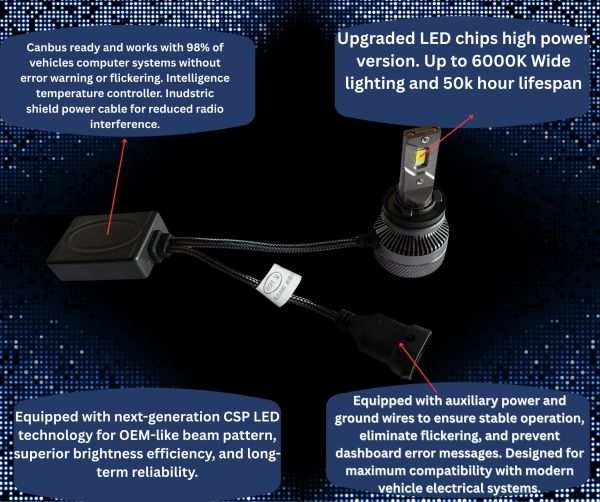 La avanzada tecnología LED CSP garantiza un haz de luz de tipo OEM, alta eficiencia y larga vida útil.