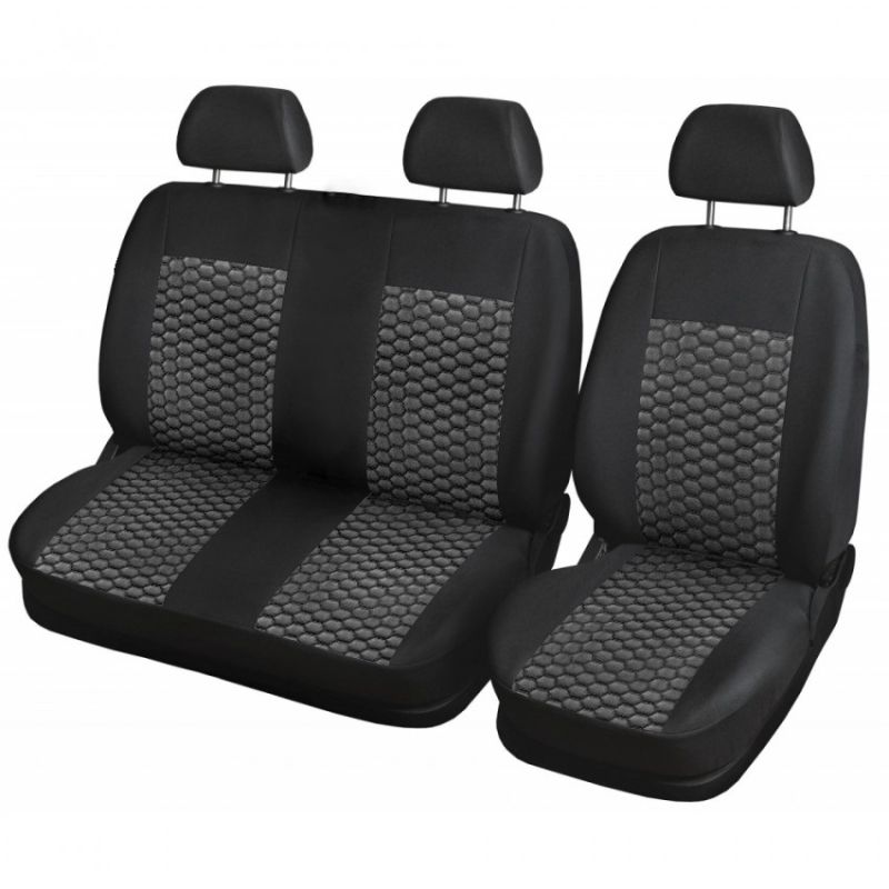 Cubre Asientos 1+2 para IVECO DAILY furgoneta Negro Cueros Textil