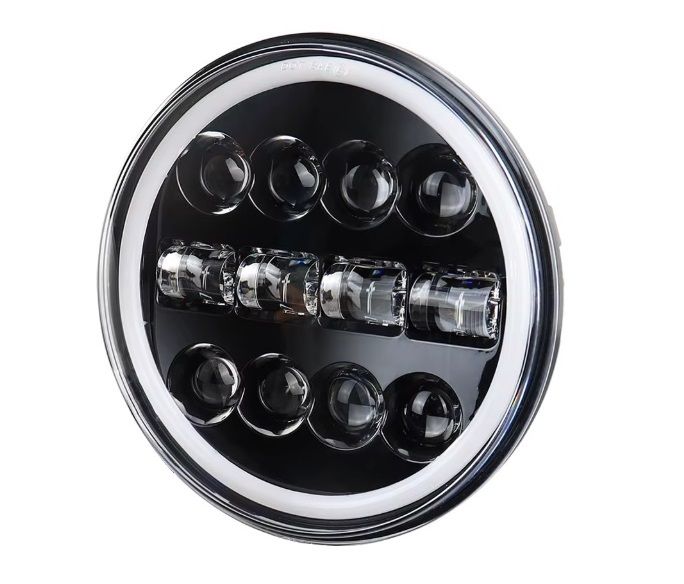 LED Rund Frontlys 178mm/7inch 40W Hi/Low/DRL/Blinklys Halo Moto 12V 24V