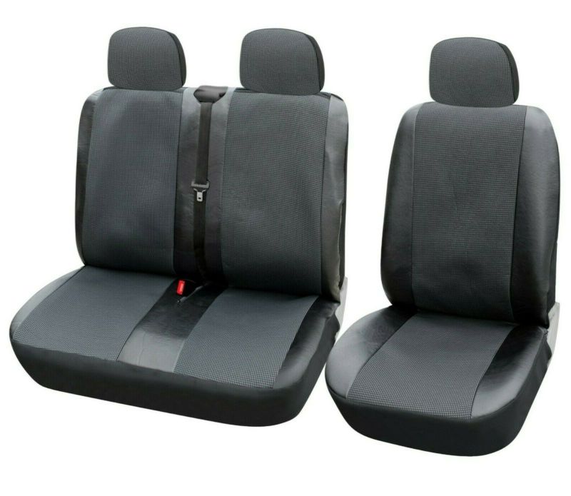 2+1 Universal Sitzbezüge für Kleinbus Lieferwagen Van Schwarz Leder Textil