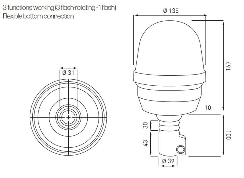 72 LED Warnleuchte Rundumlicht Bernstein Strobe Beacon Licht Orange 135mm 12V 24V