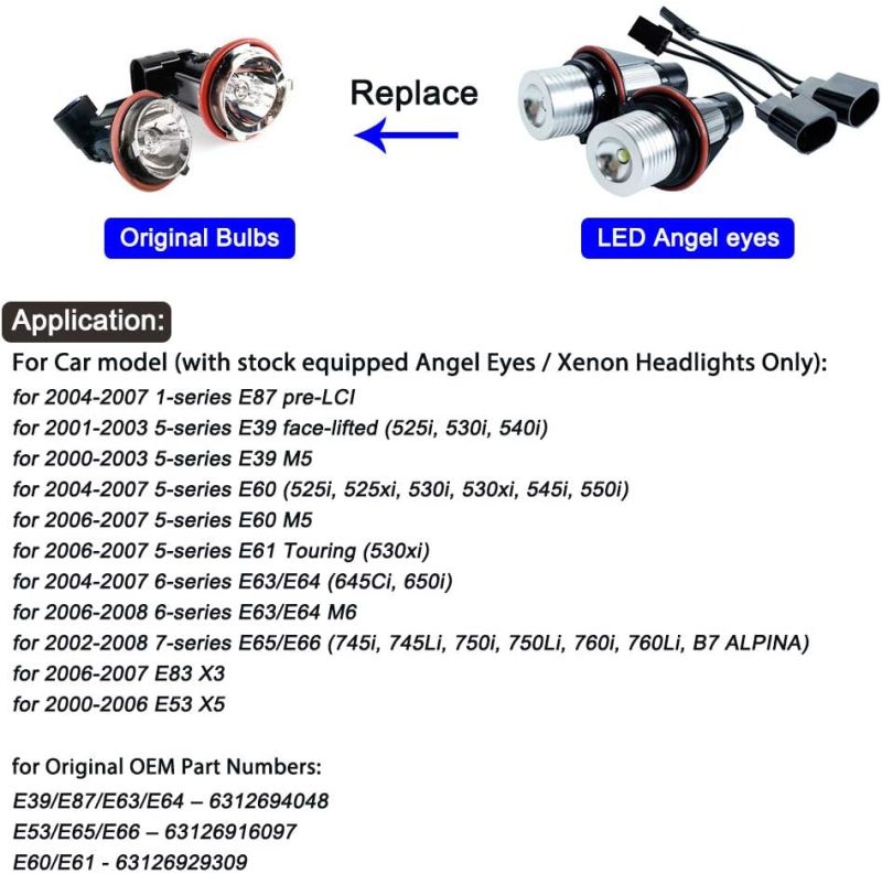 - Jedes LED Angel Eye hat 5W mit einer superhellen Beleuchtungsleistung von 1000 Lumen