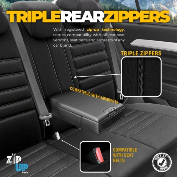 MULTIFUNKTIONALE RÜCKSITZBEZÜGE – 3-REISSVERSCHLUSS-SYSTEM