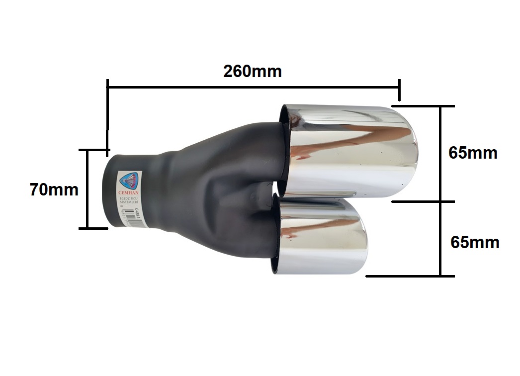 Ändrör 260mm Svart Silver Kromad Dubbel Universell